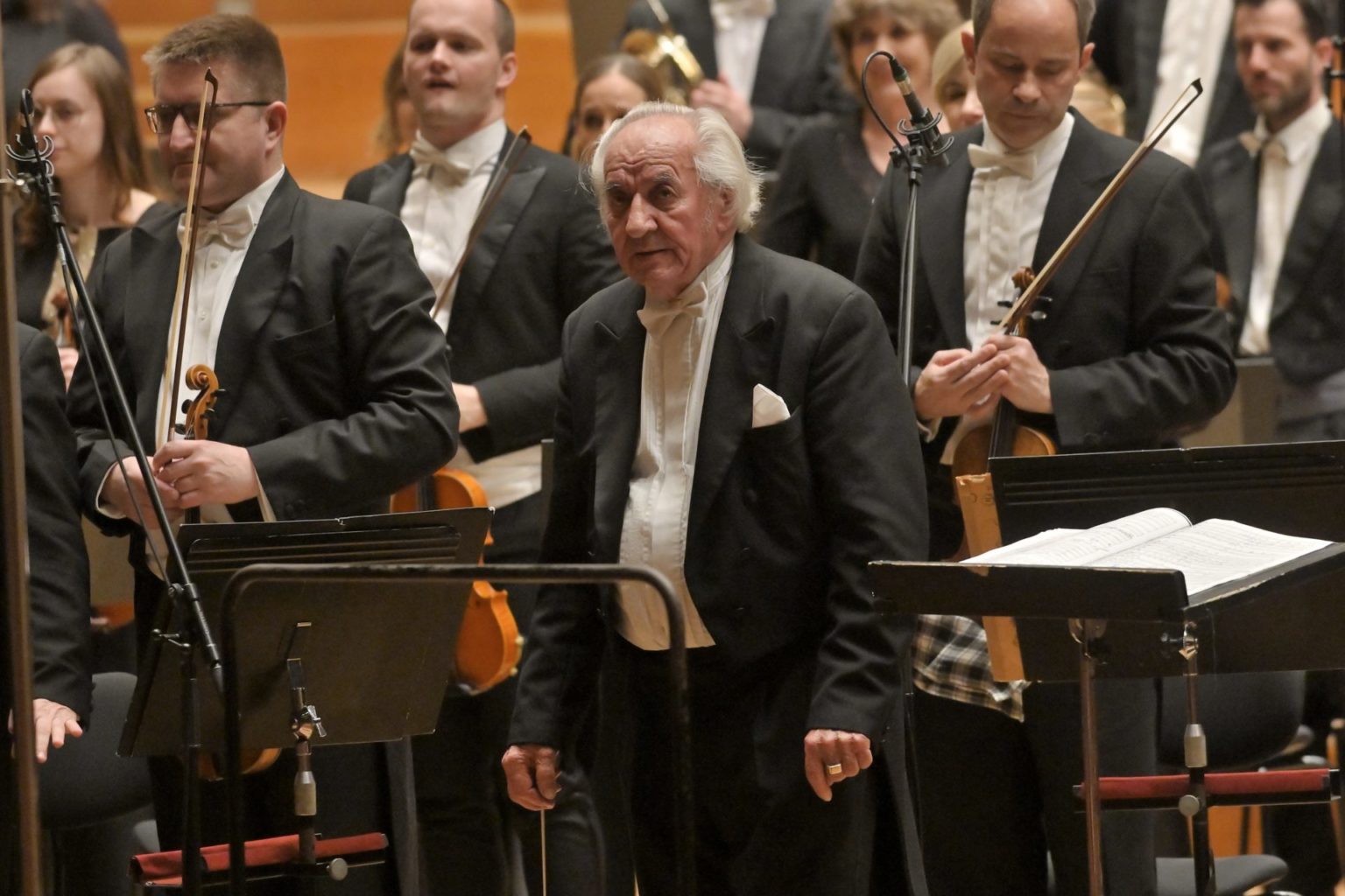 Jedným z najväčších posluchových zážitkov bola určite aj interpretácia Das Tanzlied, v ktorej sme počuli husľové sólo koncertného majstra SOSR Lukáša Szentkeresztyho. Správne odhadol spôsob, ako tento valčík hrať – nie je to ten noblesný, krásny, elegantný tanec, skôr jeho ťažkopádnejšia, bežnému človeku bližšia, realistickejšia verzia. Napriek tomu však musí maž zachovaný svoj typický rytmus a frázovanie, na základe ktorého ho hneď viete identifikovať. Práve Valčík graduje do záverečnej časti symfonickej básne – Nachtwandlerlied, v ktorej necháva paralelne naraz znieť dve tóniny. Tento nestabilný záver a harmonický konflikt medzi husľami, drevenými dychmi, harfe, na druhej strane oproti durovej tónine je to zjavný mol v čelách a kontrabasoch, ponecháva záver v skladby v jednom veľkom otázniku.