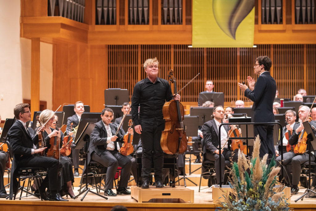 Dánsky violončelista Jonathan Swensen sa predstavil v Dvořákovom Koncerte pre violončelo a orchester h mol z roku 1895. Skladateľovi práce na koncerte trvali tri mesiace, má typickú trojčasťovú štruktúru so strednou pomalou a okrajovými rýchlymi časťami a neobvykle dlhú orchestrálnu predohru. V nej sme videli brilantnú výstavbu – od pomalého tempa v pianissime orchester behom niekoľkých taktov postupne vygradoval do rýchleho tempa Allegro vo fortissime. Nebola to však Karajanovská výstavba, ale nový, progresívny spôsob Johna Warnera, ktorý už hneď v úvode introdukcie priniesol svieži, nový závan na toto dielo.