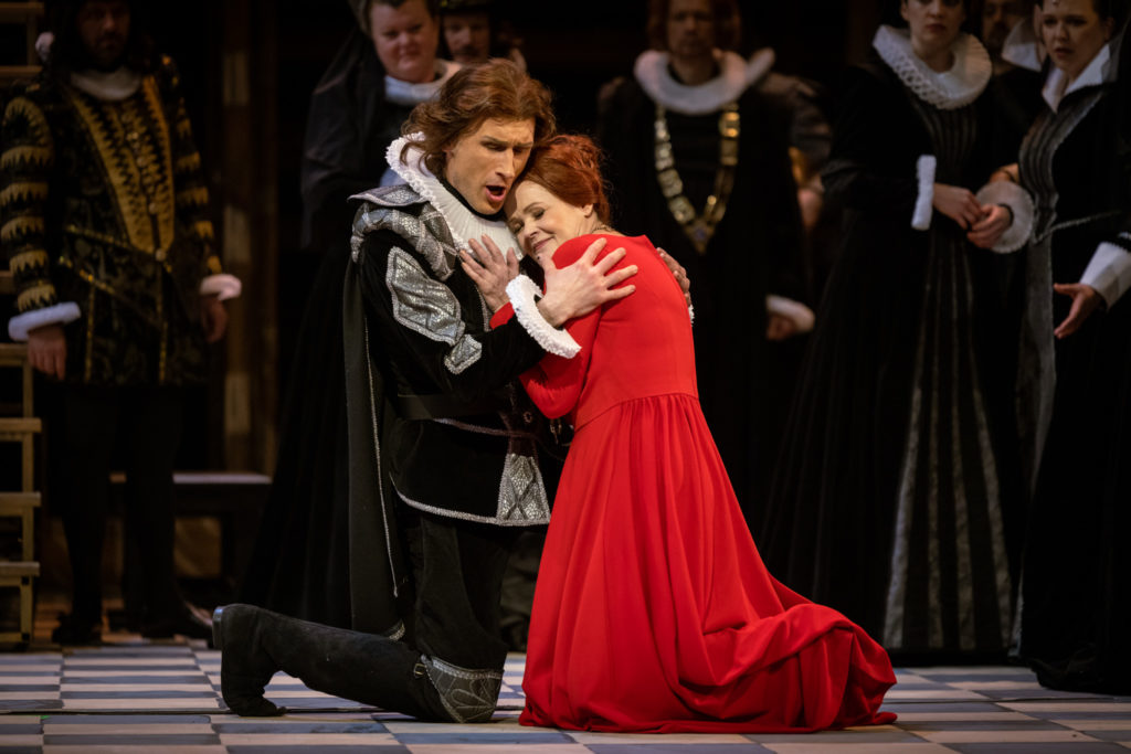 Donizetti napísal túto operu, keď bol na vrchole svojej skladateľskej kariéry. A hoci v námetoch mnohých svojich diel podľahol čaru novej romantickej literatúry, s obľubou sa vracal do anglickej histórie ako k lákavému zdroju javiskovo efektných tém. Zaujal ho osud škótskej kráľovnej Márie v spracovaní Friedricha von Schillera, na rozdiel od predlohy sa však Donizetti vyhol politicko-náboženským témam. Ponechal však legendárnu fiktívnu scénu stretnutia Márie Stuartovej s Alžbetou I. Výrazný dramatický konflikt, bohatý psychologický profil postáv, nádherná hudba a skvelý príbeh s dvomi kráľovnami – rivalkami sú v sugestívnej inscenácii francúzskeho režiséra Gilberta Blina výpravným historickým operným divadlom.