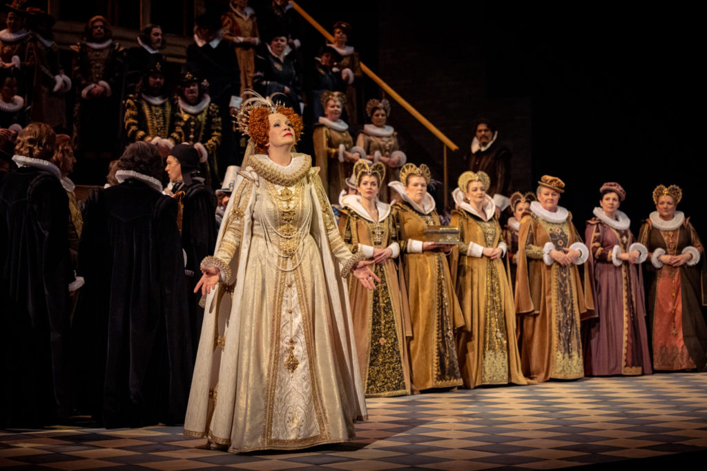 Opera sa odohráva v Anglicku v roku 1587 vo Westminsterskom paláci a na hrade Fotheringhay. Kľúčovými prvkami scénickej výpravy sú podľa Alexandra McCargara steny z rôznych materiálov odkazujúce na alžbetínsku éru a niektoré výskumy z 19. storočia. „Využil som informácie, ktoré boli v librete, chcel som ukázať, ako vyzerá alžbetínsky svet, ale aj Donizettiho svet,“ objasnil scénograf. Pri práci na scéne využil drevo i kameň. "Kachličkové chodníky, ktoré vtedy boli v Londýne, sú skoro v každej scéne, prišiel som k nim na základe historického skúmania," povedal McCargar.