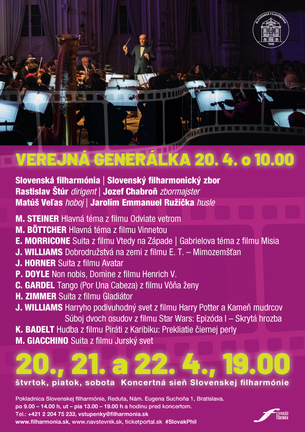 Aprílové koncerty Filmovej hudby uvedie Slovenská filharmónia tradične pod taktovkou Rastislava Š...