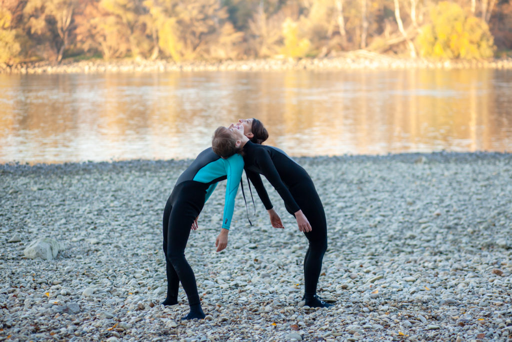 Tanečnica, choreografka a performerka Eva Priečková a vizuálna umelkyňa Katarína Poliačiková uvedú na Nu Dance Feste prvú reprízu spoločného projektu Držať Rieku / Holding River, ktorý premiérovali na jeseň 2022. Predstavenie sa odohráva na dunajskej pláži na petržalskej strane rieky neďaleko mosta Lanfranconi a jeho uvedenie v nedeľu 16. 4. v skorom popoludní bude spojené s malým piknikom.