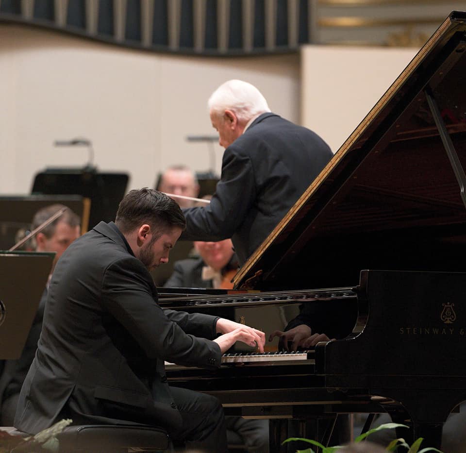 Sólistom večerov bol mladý český klavírny virtuóz Robert Bílý, víťaz 10. ročníka Medzinárodnej klavírnej súťaže Johanna Nepomuka Hummela, v ktorého interpretácii znel s veľkým úspechom a pred vypredaným hľadiskom aj utorkový klavírny recitál v Malej sále.