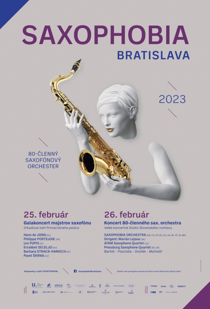Saxophobia Bratislava je už pevnou súčasťou bratislavského, ale i celoslovenského hudobného života. Každoročne prináša publiku saxofón trochu inak – ako plnohodnotný nástroj klasickej a súčasnej hudby. Vyše 80 saxofonistov z celej Európy sa v Bratislave zíde, aby si na štvordňových majstrovských kurzoch (23.2. - 26.2.) na pôde Vysokej školy múzických umení rozširovali svoje zručnosti pod vedením šiestich špičkových zahraničných lektorov z Holandska, Francúzska, Slovinska, Rakúska, Maďarska a Česka. Organizátori však nechcú saxofón zavrieť iba do učebných tried a pre verejnosť pripravili dva výnimočné koncerty s rozmanitosťou štýlov od klasickej hudby obdobia baroka, romantizmu cez tango až po súčasné kompozície.