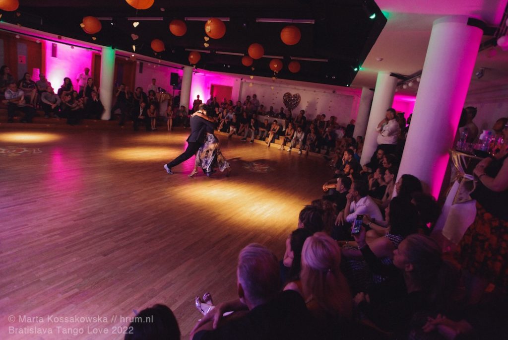 Hoci v medzinárodných súvislostiach sa (predovšetkým po pandémii) doslova predháňajú jednotlivé krajiny v organizovaní podujatí v tomto smere, Bratislava má na tango „mape“ sveta už niekoľko rokov zapichnutý svoj inšpiratívny imaginárny špendlík. Jednou z atraktívnych akcií, ktorá sa spravidla zvykne konať v jarných dňoch, (ale tento rok ju organizátori presunuli na zimný mesiac), je maratón. V tango komunite je celkom jasné, keď sa vás niekto spýta, či idete na maratón, že v centre záujmu je maratón tanga. A hoci už leštím parket v ronde na „štekloch“ pár symbolických rokov, takmer vždy, keď vo svojom okolí spomeniem maratón, vyvolám desivý údiv na tvárach mojich kamarátov, ktorí sa na moment mylne domnievajú, že som sa na sklonku môjho antišportového nastavenia dala na štyridsaťdva kilometrovú makačku v teniskách, zatiaľ, čo majú problém ma vytiahnuť raz do roka na Železnú studničku. Existuje však aj tanečný maratón, ergo maratón argentínskeho tanga, ktorý si už aj v našich domácich podmienkach postupne vykreoval etablované miesto atraktívne aj pre medzinárodnú tango komunitu.