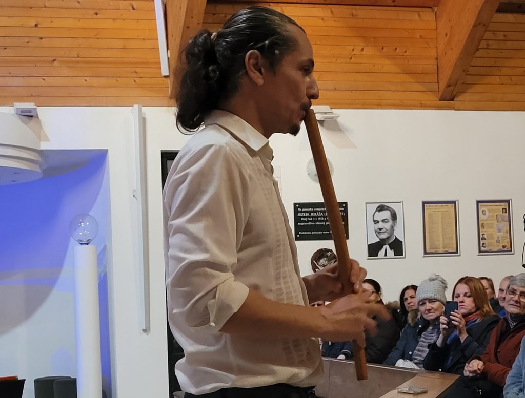 Nasledujúce tóny zneli na fujare, s ktorou precestoval spevák mnoho krajín. Okrem toho hrá aj na gitare, ako sme sa dozvedeli, zabudol si ju však doma, takže sa publiku na nej nemohol predstaviť. Záverečný blok patril vianočným piesňam – nie však typickým, žiadne odrhovačky to neboli. Spevák totiž preložil najväčšie hity do slovenčiny či češtiny, čím nabrali úplne novú poetiku. Aj hudobne bol tento blok nesmierne bohatý – bolo v ňom kombinovaných veľa žánrov s akcentom na jazz. A tak sa napríklad z White Christmas stali Bílé Vánoce či Šťastné a veselé (pôvodne Hugh Martin) a zaznela aj gospelová pieseň pre zbory Christmas Song, ktorú Američania spievajú v kostoloch (jej autormi sú Robert Wells a Mel Tormé) – počuli sme ju preloženú do slovenského jazyka ako Čas pečených gaštanov. Ako obvykle, v adventnom čase znela na záver koncertu Tichá noc, no tiež v jazzovej podobe – pridalo sa aj publikum, ktoré možno ani na začiatku koncertu netušilo, aká prehliadka žánrov je na koncerte pripravená. No odchádzalo s pokojom a radosťou – tak, ako to má na Vianoce byť.