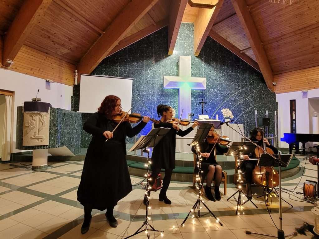 Na koncerte v bratislavskom Evanjelickom kostole na Strečnianskej ulici v Petržalke (4. decembra 2022) odzneli rôzne piesne – hlavne z autorskej dielne samotného Petra Adamova, ktorý okrem toho, že je talentovaný tvorca, má nepochybne talent aj na jazyky. Rovnako, ako dobre spieva v materinskej reči, spieva presvedčivo v češtine, taliančine či francúzštine. Úvod patril hudbe z filmu Perinbaba, v ktorej sa predstavilo kvarteto The Ladies Ensemble - Anežka Kara (prvé husle), Eliška Podolská (druhé husle), Alice Karbanová (viola), Lujza Ďurišová (violončelo). Sú to všetko zdatné hráčky, ktorým to nielen spolu dobre ladí, sú muzikálne, ale dokážu aj spolu dýchať, na pódiu si rozumejú, vedia rešpektovať líderku a vzájomne sa počúvať. Pripojil sa k nim spevák, ktorý prišiel – prekvapivo, z priestoru, odkiaľ vchádzali ľudia, až k pódiu. Znela iba ústredná téma Perinbaby. Adamov je multiinštrumentalista, čo počas koncertu dokázal niekoľkokrát. Hrá nielen na klávesy, ale aj na rôzne dychové nástroje – flauty, či fujaru. V tento večer zvolil namiesto klavíra vhodnú alternatívu syntezátoru, ktorý sa vie priblížiť k zvuku klavíra, takže nepôsobil umelo, čo vo výsledku s kvartetom vytváralo v priestoroch kostola zvukovo veľmi peknú symbiózu.