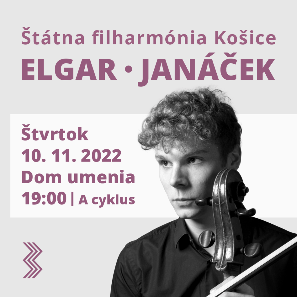 Symfonický koncert A cyklu ELGAR – JANÁČEK sa uskutoční vo štvrtok 10. novembra o 19:00 v Dome umenia. Cena vstupného je 12/11/10 €, zľavnené 9/8/7 €, lóža 16 €. Vstupenky na podujatia Štátnej filharmónie Košice sú v predaji aj so zľavami vo vstupenkovej pokladnici Domu umenia od pondelka do štvrtka (10:00 – 12:00, 14:00 – 17:00) a hodinu pred podujatím. Cez portál www.navstevnik.sk sa dajú zakúpiť bez zliav.