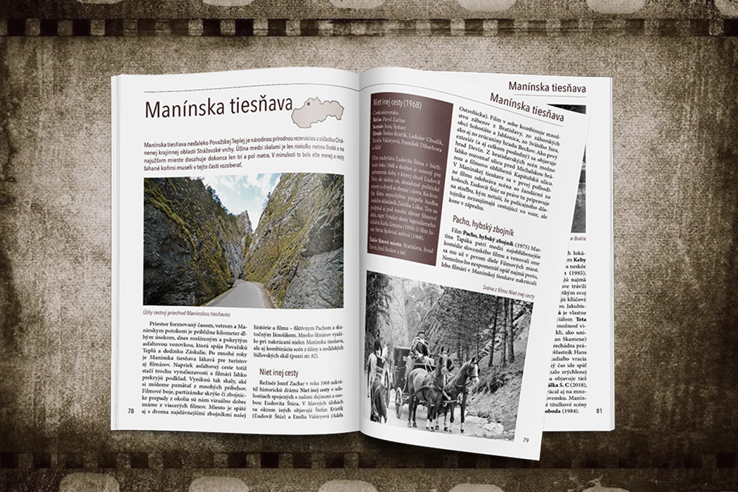 Zaujímavosťami a kuriozitami nabitá kniha takéto miesta mení na o štipku zaujímavejšie. Budete si môcť prečítať, ako veľmi je pre svetový film cenný Slovenský raj, čím do našej kinematografie prispeli dedinky Malatiná, Veľké Borové, Blatnica, Papradno, Lúčky, Ludrová a mnoho iných. Akú úlohu zohráva v rôznych historických filmoch kostolík z Dražoviec pri Nitre. Nemenej zaujímavé je dozvedieť sa, kde všade máme možnosť vidieť Čremošniansky tunel, Zvolenský zámok, Manínsku tiesňavu, alebo čím zaujímavým do sveta filmu prispeli v dávnej aj nedávnej minulosti Kysuce.