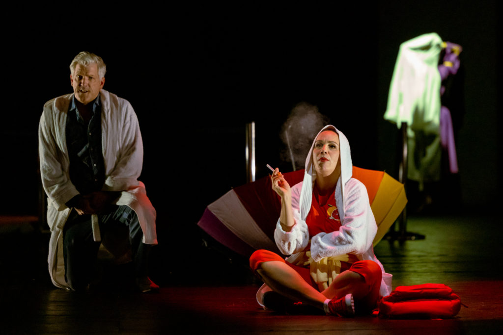 Pred predohrou divákov čakal mimoriadne vtipný slovný úvod, v ktorom sa absurdný svet inštrukcií zmenil na obrovský kolos zákazov, príkazov a odporúčaní. Čo všetko v divadle smieme – ohrievať kreslo, opustiť sálu, kašlať, kýchať, tlieskať (no odporúča sa v rytme hudby), stupňujúc všetky tieto odporúčania sme sa zrazu dostali až do lietadla. Po vyslovení známych slov „Fasten your seatbelt” sme videli zrazu pred očami letušku, ktorá svojimi pokynmi inštruuje pasažierov na palube aj vizuálnymi inštrukciami. Zaznelo ďakujem v mnohých jazykoch – dokonca v tureckom, teşekkürler. Pôsobilo to, akoby sa uvádzačka nášho večera nechala emóciami príliš strhnúť. Už vtedy divák vedel, že toto dielo ho zavedie do iného sveta – tak trochu crazy, ale plného obrazotvornosti, nových konotácií. No najmä sveta súčasného. Mimoriadne osvieženie po všetkých tých romantických tituloch.