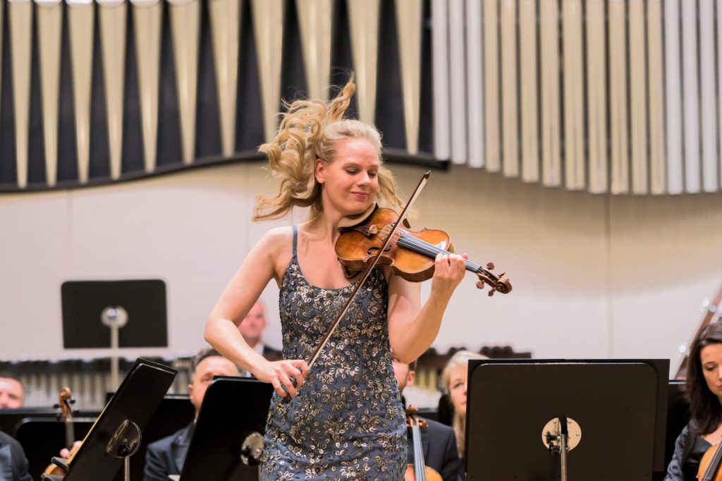 Už hneď úvodné frázy v podaní holandskej huslistky boli interpretované s nádychom romantizmu, rozhodne to však s pátosom neprehnala, ani s agogikou – práve preto bola jej triezva interpretácia pohľadom súčasnej umelkyne na toto dielo. Nie je to však len tento štýl, s ktorým sa musela vysporiadať. Skladateľ využíva jedinečnú zvukovosť - už hneď v prvej časti kombinoval ľúbivé, krásne harmonické postupy s prekvapivými disonanciami. Z lyriky a príťažlivo plného tónu Simone Lamsma plynulo dokázala prejsť do expresívneho, drsnejšieho výrazu. Orchester v týchto pasážach pod taktovkou Raiskina výborne pracoval s tempami a ťahal túto vznešenú prvú časť Moderato nobile do nečakaných zvratov v sonorike. Sólistke poskytol dobrú oporu, no skladateľ mu nenadelil len sprievodnú funkciu. Rozohral v ňom nové farby a témy, takže sa stal plnohodnotnou súčasťou živého organizmu. Znel s plným zvukom, výrazne a s dobre vystavanou dynamikou.