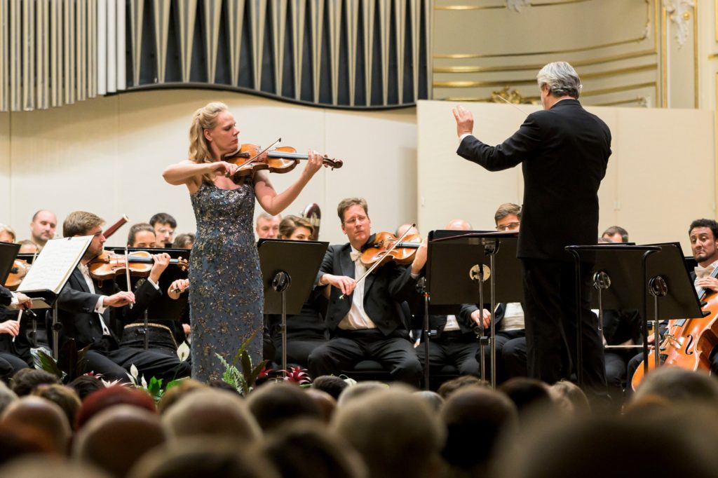 Sólistkou druhého uvádzaného diela bola mladá holandská huslistka Simone Lamsma, ktorá sa prišla do Reduty po roku a pol. Tentoraz v jej interpretácii znel Koncert pre husle a orchester D dur, op. 35 Ericha Wolfganda Korngolda - rodáka z Brna, držiteľa dvoch Oscarov za filmovú hudbu, ktorú komponoval pre Hollywod po emigrácii do USA v roku 1934. Korngoldovo dielo vo všeobecnosti u nás nie je až tak známe, nepatrí medzi typických skladateľov klasickej hudby, skôr býva označené nálepkou „komerčné“, napokon, aj po premiére jeho husľového koncertu sa objavilo v dobových recenziách, že je to len „pozlátko“, a skôr „kukurica“ ako zlato (pohrávajúc sa pritom s jeho priezviskom). Napriek všetkému, je krásny, aj virtuózny, má aj prvky Hollywoodu (alebo ešte inak povedané, filmovej hudby), pretože akokoľvek sa snažil vymaniť z tohto žánru, predsa len sa naňho isté „maniere“ nalepili.