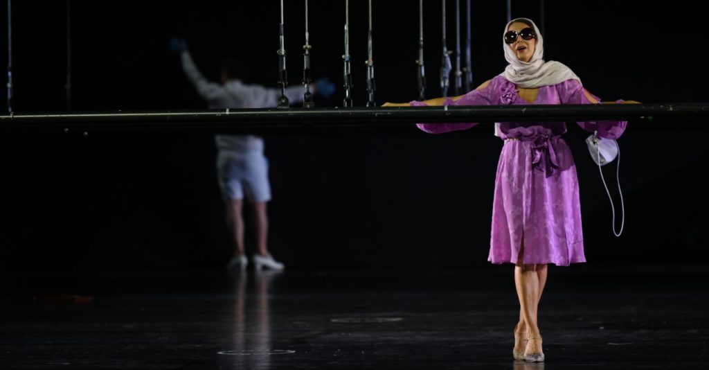 Režijné naštudovanie na našej prvej scéne mal na starosti Felix Schrödinger, ktorý podotkol, že dnešná inscenácia už nepodlieha prísnym pravidlám, ktoré boli pri naštudovaní v Bregenzi. Všetky rekvizity boli dezinfikovaní, umelci sa nemohli na javisku dotýkať: „Nemusíme sa držať týchto pravidiel a je to veľký rozdiel. Musíme si spomenúť, ako sme to vtedy robili a snažiť sa to zrekonštruovať. Na generálnej skúške sa stal vtipný moment počas klaňačky. Sólisti sa spýtali, či sa môžu držať za ruky. To je presne ten moment, ktorý je taký rozdielny a pripomína nám obdobie covidu,“ vysvetlil Schrödinger. Produkcia je obohatená aj o nové kostýmy (autorka kostýmov Nicole Pleuler) niektoré boli prebraté z Bregenzu, ďalšie boli doplnené z Bratislavy.