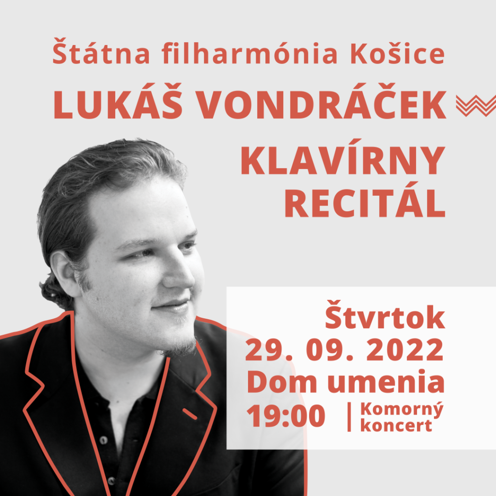 Laureát Ceny Kráľovnej Alžbety Lukáš Vondráček sa v Košiciach predstaví 29. septembra o 19:00 v Dome umenia. Koncert v spolupráci s Českým spolkom v Košiciach je súčasťou Dní českej kultúry 2022.