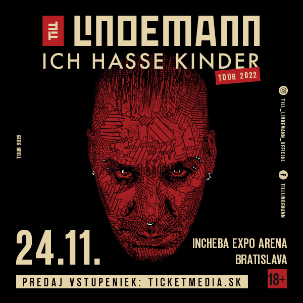 Na koncerte zaznejú skladby Praise Abort, Skills In Pills, Ladyboy, Fish On, Fat, Frau & Mann, Steh Auf či Ich Hasse Kinder. Fanúšikovia sa môžu tešiť na množstvo experimentálnych a nekonvenčných hudobných nápadov, pôsobivé videoprojekcie a brutálne pyrotechnické efekty. Nebudú určite chýbať ani spevákove scénky v rôznych prevlekoch, ktoré sú mládeži do 18 rokov neprístupné. 59-ročný hudobník, básnik a športovec je totiž na pódiu neprehliadnuteľný! Nenechajte si ujsť jednu z najväčších hudobných udalostí roka. Stretneme sa 24. novembra 2022 v Incheba Expo Aréne v Bratislave a 22. novembra 2022 v Tipsport Aréne, po novom v Športovej hale v Holešovicích v Prahe. Vstupenky na Ich Hasse Kinder Tour 2022 sú dostupné na https://ticketmedia.sk/performance/952/TILL-LINDEMANN