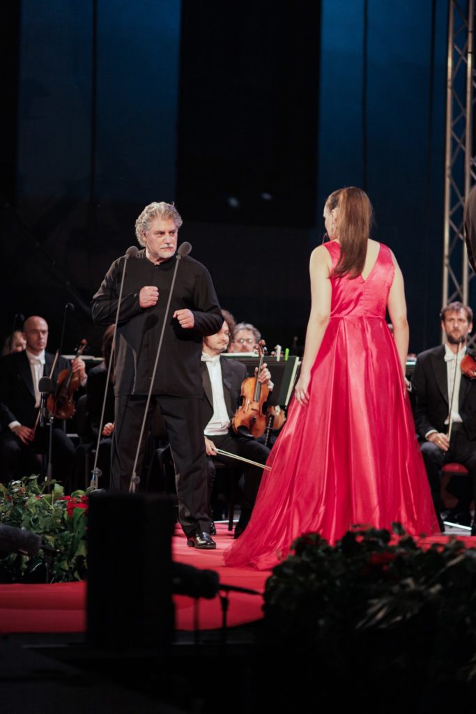 Duet s hviezdou večera čakal aj našu sopranistku, nielen Polinu. A ušiel sa jej jeden z najkrajších milostných duetov, aké kedy vôbec boli napísané. Gia nella notte z Otella patrí rozhodne medzi také duety – tlmené tóny violončiel v úvode navodia romantickú atmosféru, Desdemonu sprevádza harfa. No v partoch oboch sa snúbi dráma so zúfalstvom. Je to prekrásna téma blízka štýlu Wagnera. Má v sebe naliehavosť a harmonické napätie. Práve v tomto momente už José Cura „prejavil svoje city voči Desdemone“ a vyznal sa publiku, že je to frustrujúce stáť len na jednom mieste, pri mikrofóne. Hovoril, že dostali inštrukcie, aby sa nehýbali, pretože zvuk sa potom nedostane k publiku, no preňho ako speváka je niečo také nemysliteľné. Každopádne, medzi oboma spevákmi na pódiu fungovala príjemná chémia – napriek tomu, že išlo o koncertné prevedenie. Nebol to ten typ chladného koncertu, kde sa rad za radom striedajú árie, duetá, predohry a intermezzá, no každé číslo malo svoj pulz a život – aj vďaka tomu, že ten život na pódium priniesol José Cura.
