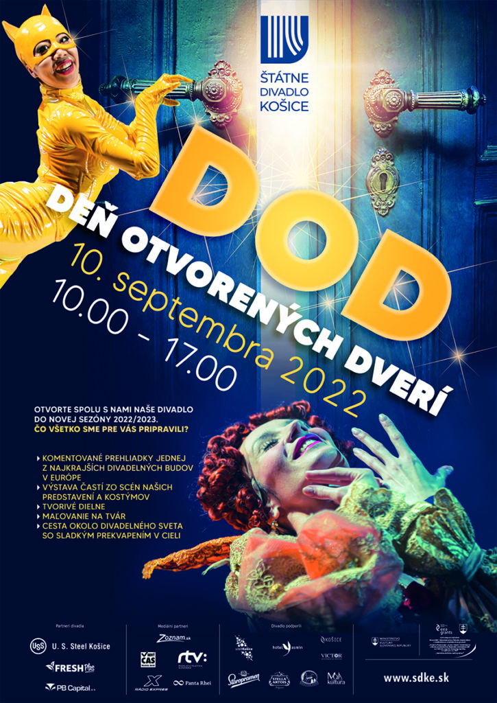 Už túto sobotu, 10. septembra, sa pre všetkých malých aj veľkých priaznivcov divadla a dobrej zábavy naplno otvoria brány Štátneho divadla Košice. „Naplánujte si pekný víkendový deň a príďte spolu s nami otvoriť novú sezónu 2022/2023 na populárny DEŇ OTVORENÝCH DVERÍ,“ pozývajú košickí divadelníci svojich fanúšikov do ŠDKE.