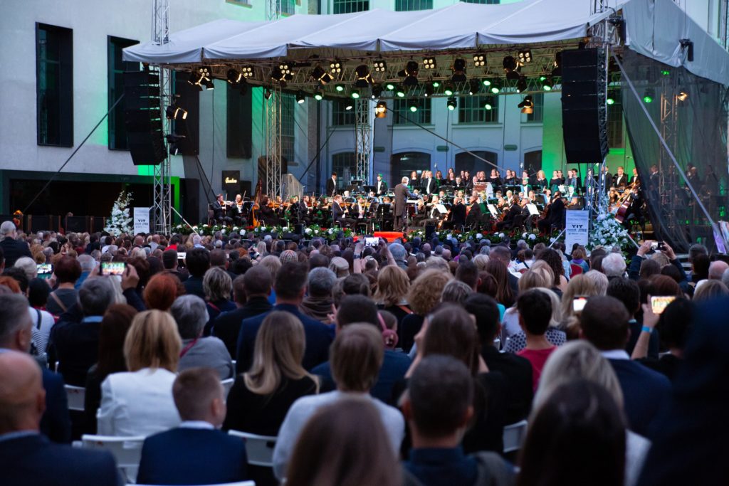 Elánu svedčia veľké priestory – preto vkusne zrekonštruovaná Pradiareň 1900 a námestie s kapacitou tisíc ľudí, ktoré bolo do posledného miesta zaplnené, bolo už druhý rok tým miestom, ktoré 1. septembra o 19-tej hodine privítalo na pódiu Symfonický orchester Slovenského rozhlasu, Spevácky zbor Technik STU (Zbormajsterka: Petra Torkošová) a sólistov - Martina Gyimesiho, Ivanu Regešovú a Andreu Zimányiovú pod taktovkou Konstantina Ilievskeho.
