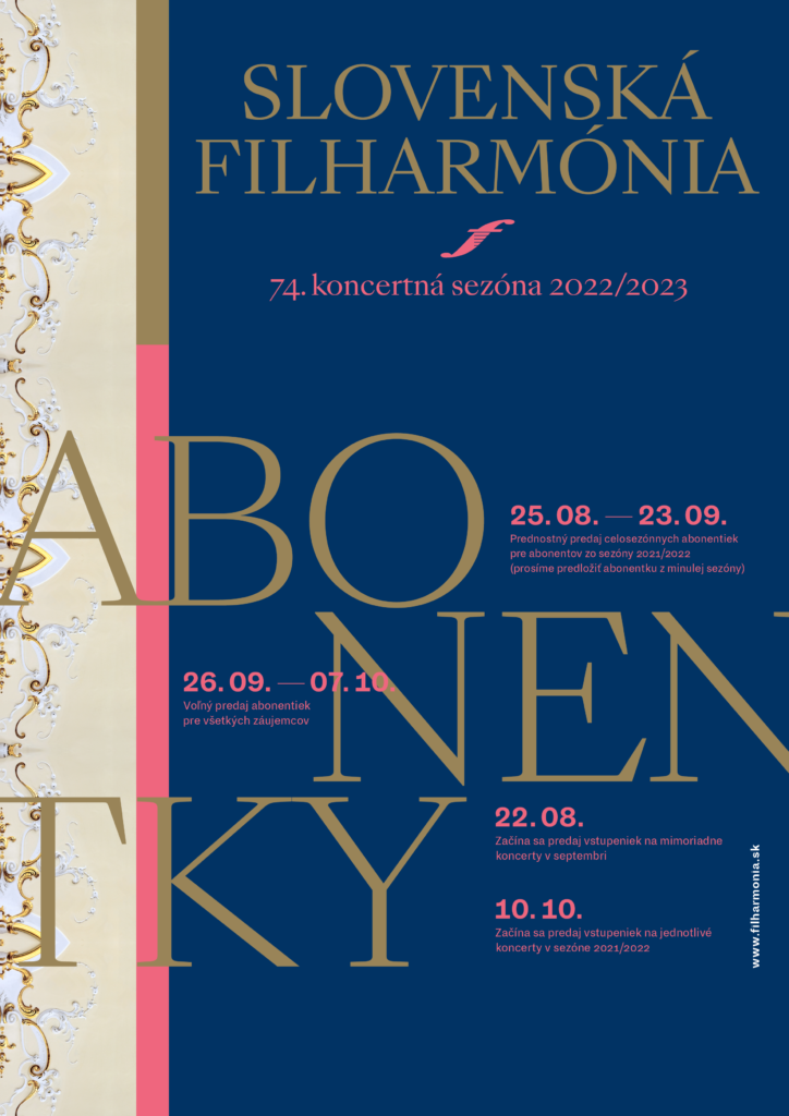 Od štvrtka 25. augusta si môžu prednostne zakúpiť ABONENTKY naši stáli návštevníci, abonenti z minulej koncertnej sezóny 2021/2022. Prednostný predaj potrvá do piatka 23. septembra.