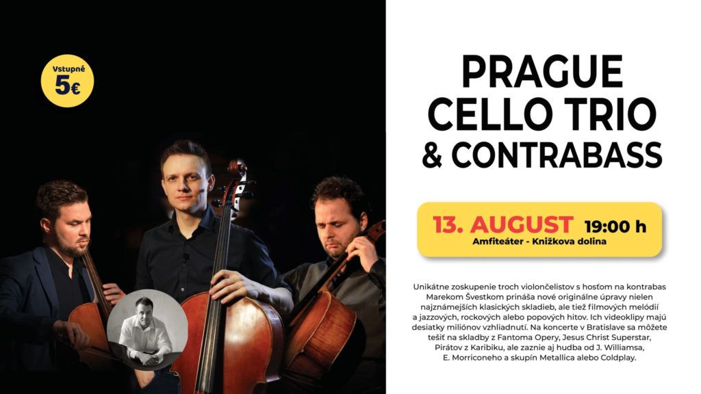Pôvodne Prague Cello Quartet v Bratislave vystúpia ako trio s hosťom Marekom Švestkom na kontrabase.