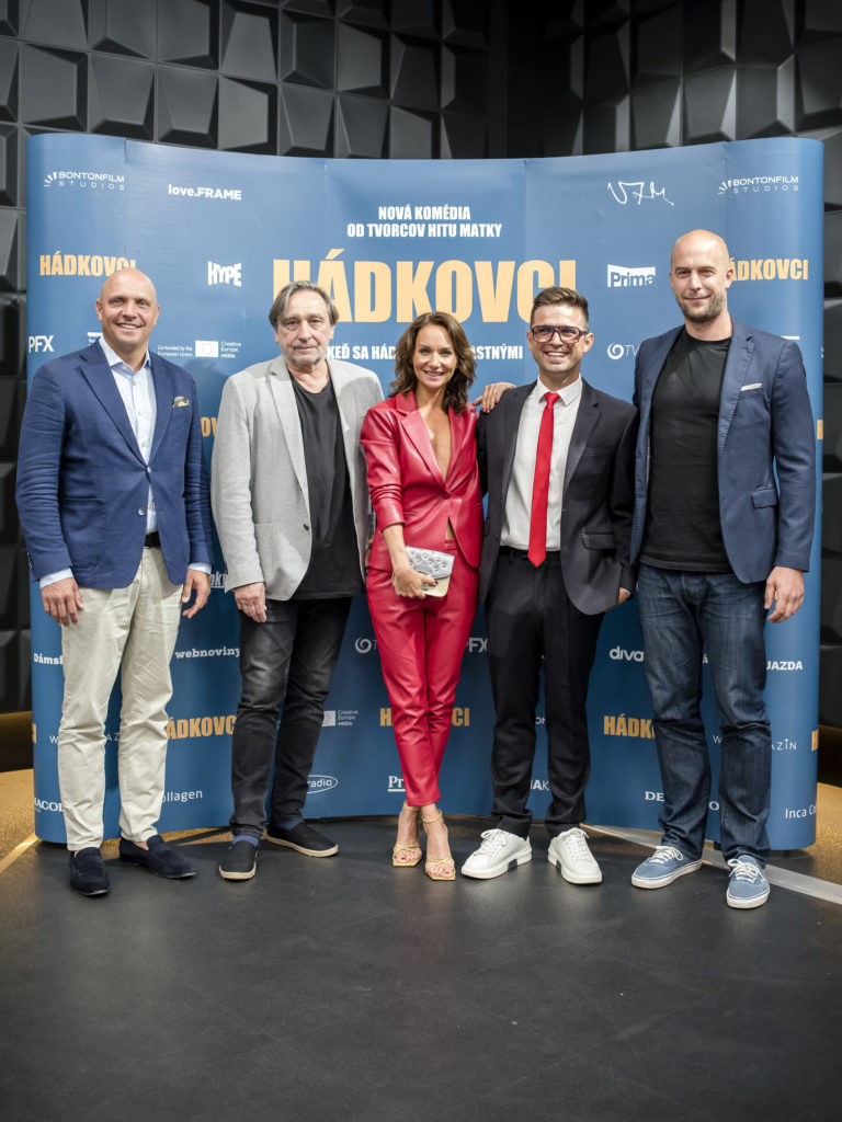 Komédiu Hádkovci prišli slovenským divákom predstaviť tvorcovia Sandra Nováková a Vojtěch Moravec, ktorí k snímke spoločne napísali scenár, pričom Vojtěch film zároveň aj režíroval a Sandra si v ňom zahrala jednu z hlavných postáv. Spoločnosť im na slávnostnej premiére v Bratislave robil herec, ktorý v komédii stvárnil postavu otca, ako aj generálny riaditeľ distribučnej spoločnosti BONTONFILM Martin Palán a producent filmu a zároveň riaditeľ spoločnosti Bontonfilm Studios Ondřej Kulhánek.