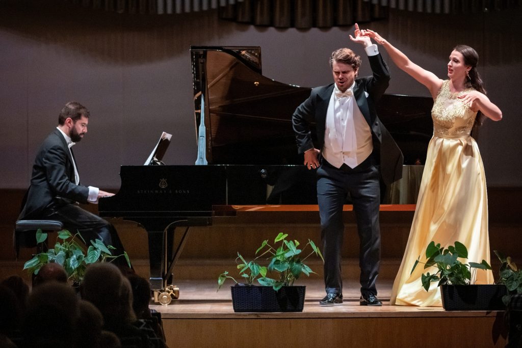Obaja speváci sú nositeľmi zvučných mien už teraz, no je nepochybné, že veľká kariéra ich ešte len čaká. Bratislavskému publiku v Koncertnej sieni Slovenskej filharmónie sa predstavili s mimoriadne pútavou dramaturgiou – poslucháčsky príťažlivou, zároveň javiskovo atraktívnou, takže koncertná podoba árií a duetov dostala vďaka ich hereckému a tanečnému umeniu aj temperament a esprit. Nebol to len klasický koncert operných spevákov – číslo za číslom, s klavírnym doprovodom – mimochodom, tým vynikajúcim klaviristom bol Stephen Hopkins (ku ktorému sa ešte dostaneme). Tento koncert bol stavaný príbehovo, zároveň bol vyskladaný zo známych kusov, ktoré zneli v prvotriednej interpretácii. Či už to bol klasicizmus alebo bel canto – oba štýly dokážu preveriť spevákov, dokonca, tie jednoduchšie znejúce čísla sú zradné a dokáže v nich vyplávať napovrch každá jedna chyba, i ten najmenší detail. V tento večer sme sa však stretli s priezračne čistou interpretáciou, vypracovanou do najmenšieho detailu, ktorej zároveň nechýbala muzikalita. Vzácna kombinácia.