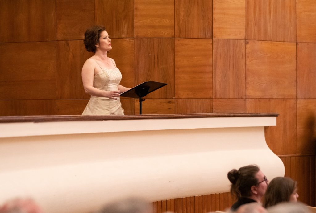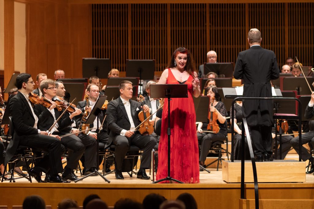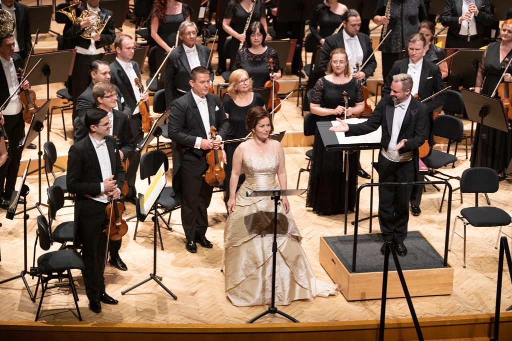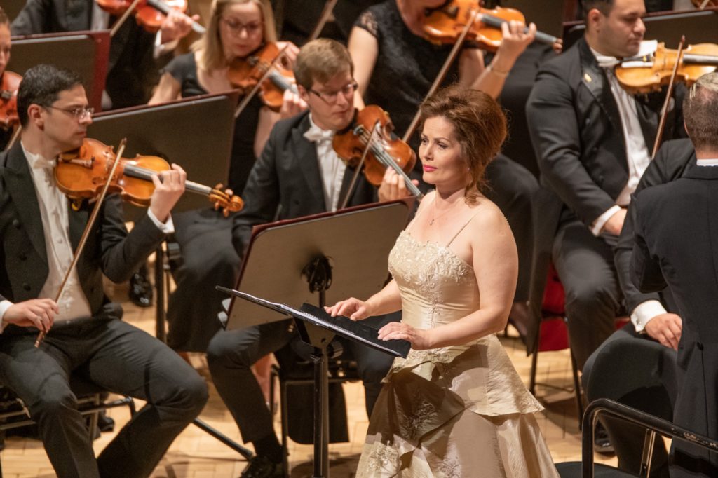 Nasledovala kľúčová scéna z opery – sen Elsy z prvého dejstva Einsam in trüben Tagen, v ktorej v zúfalstve prosí Boha o pomoc. Naša operná diva Jolana Fogašová má s repertoárom Wagnera bohaté skúsenosti, preto neprekvapilo, že do árie sa dokázala vložiť nielen technicky, ale najmä výrazovo. Vstup Elsy je náročný – v úvode ho sprevádzajú len flauta a hoboj, ku ktorým sa neskôr pridajú ďalšie drevené dychy. Wagner týmito nástrojmi dosahuje efekt nadpozemského zvuku v celej opere. S istotou nasadené tóny v podaní Jolany Fogašovej – od úvodného es, cez klesajúce intervaly vyjadrujúce smútok (dni naplnené smútkom), využila sopranistka na prácu s introspektívnym výrazom, odtieňmi piána až pianissima. Zúfalstvo, ktoré v speve vyjadrila – nad stratou brata, vyústilo v bolestivú, sugestívnu výpoveď o vízii, že príde rytier - záchranca. Je až neuveriteľné, ako Wagner v tejto (aj ďalších) áriách sleduje text a v hudbe presne zobrazuje jeho význam. Nálada sa náhle mení, keď tremolá sláčikov sprevádzajú Elsu spievajúcu o tom, že jej výkrik je plný žiaľu. Doposiaľ tichá, sugestívna hudba vybuchne emóciami, v bodkovanom rytme a zlovestnom zvuku, sopranistka ju dokázala umocniť stupňujúcou dynamikou a napätím vo frázach. Jej portamentový oktávový skok predznamenal zmenu nálady v hudbe (aj texte) a hrdinka sa opäť vrátila do sna, náladou, hudbou i textom. Korešpondoval s tým hudobný tok i vokálny prejav – Elsa opäť ponorená do sna a svojej vízie, v ktorej zvestuje príchod rytiera (Lohengrina).