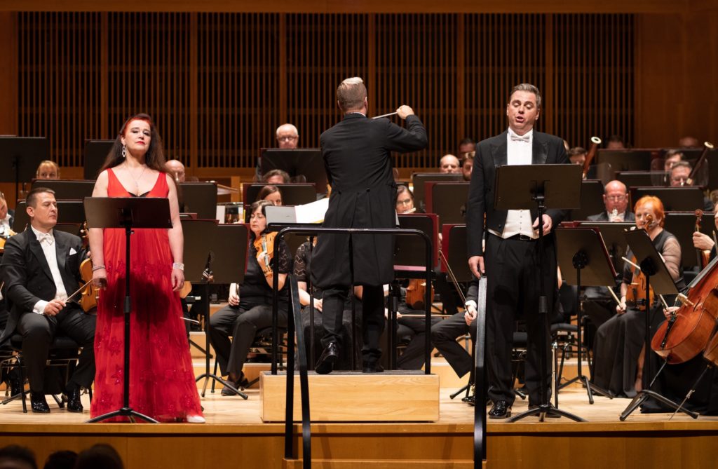 V prvej časti koncertu sme stále nepočuli ústrednú postavu – predstaviteľa Lohengrina. Záver patril duetu Ortrud a Elsy - Euch Lüften, die mein Klagen. Jolana Fogašová – spievajúc z lóže až dojímala lyrickým stvárnením tejto snovej árie, v ktorej udržiavala Elsu ako hrdinku zbožnú a zároveň snívajúcu. Už tradične nasadila vo výškach čisté, bezchybné, precítené pianissimá. Kontrastom jej sveta – postavou i hlasom, sa stala Maida Hundeling v polohe poníženej Ortrud. Pôvodom nemecká sopranistka bola na javisku dynamická nielen vokálom, ale i hereckým prejavom. V hlase dokázala vyjadriť charakter postavy - zlomyseľnosť a priam zmanipulovať subtílnu, zbožnú Elsu. Priestorovo vhodne koncipované oba ženské hlasy sa v akustike sály dobre vynímali – v duete nezanikal ani part Fogašovej, no bol intímnejší a hĺbavý, neskôr prechádzajúci i do dramatických polôh. V rozsiahlom, takmer 15-minútovom duete (človek už sa pri Wagnerovi aj obáva použiť prívlastok „dlhý“, aby nebol obvinený z dehonestácie jeho diela), skladateľ dômyselne prelína lyrické a dramatické party, spoločné či sólo, no v závere necháva priestore pre veľké vyznanie Elsy. Čisté, svietivé výšky Jolany Fogašovej, jej pianissimá, spôsob jej precíteného frázovania, dýchania s hudbou a finálny spoločný spev s Ortrud bez predchádzajúcej dramatičnosti, ústiaci v prekrásnu, nežnú melódiu v orchestri, bol jedným z vrcholov programu večera.
