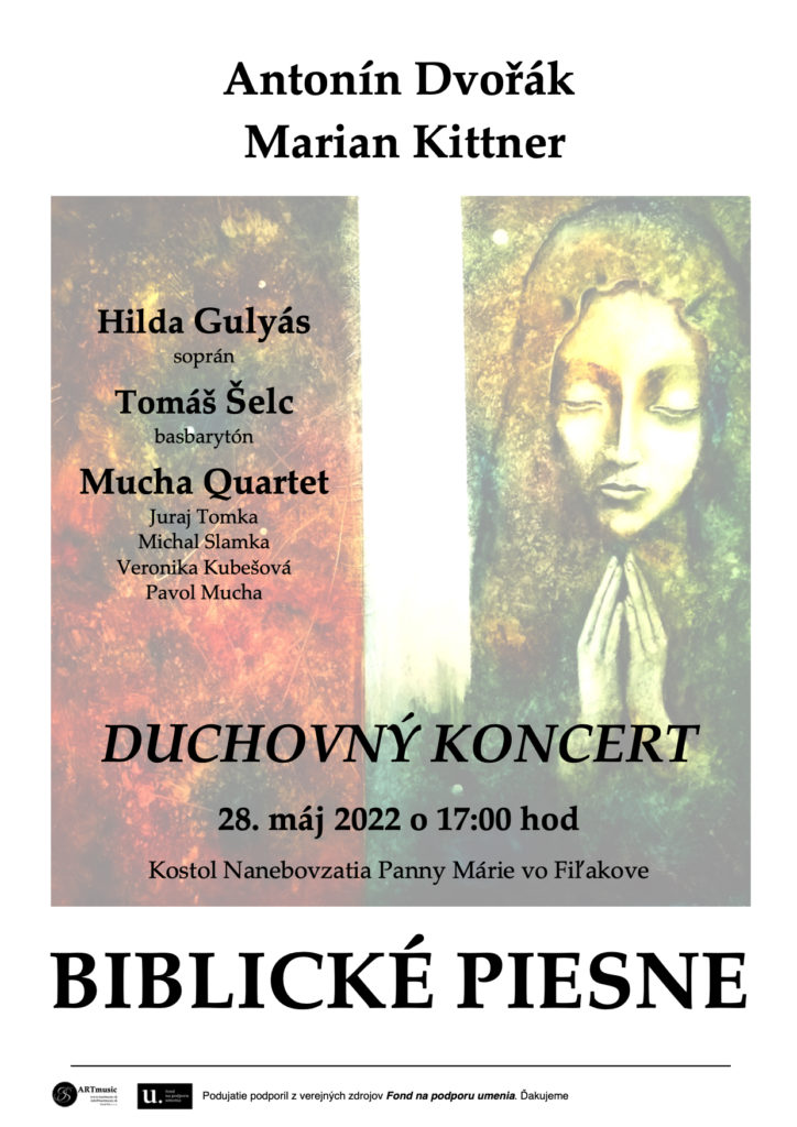 Na koncertoch vo Fiľakove a v Bratislave sa predstavia slovenskí renomovaní umelci, ktorí sú etablovanými umelcami doma a v zahraničí. Na programe zaznejú Biblické piesne op. 99 od Antonína Dvořáka pre nižší hlas v úprave pre sláčikové kvarteto a Biblické piesne Mariana Kittnera pre soprán, basbarytón a sláčikové kvarteto.