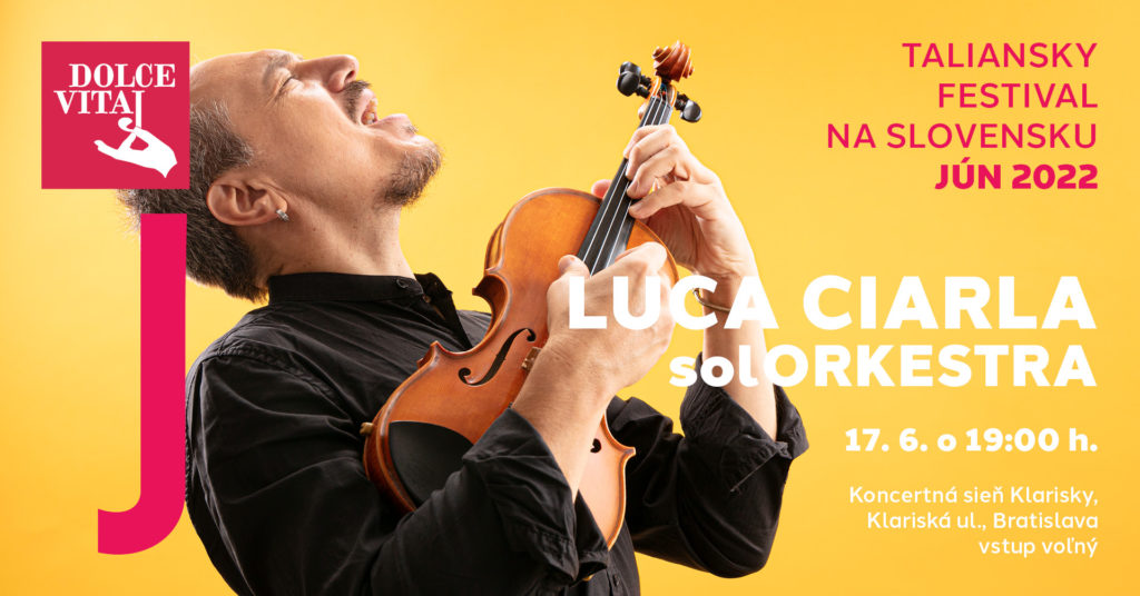 Husľový alchymista Luca Ciarla vystúpi v piatok 17. júna 2022 v Klariskách. Denník La Repubblica ho označil za jedného z najzaujímavejších huslistov na súčasnej medzinárodnej scéne, schopného pohybovať sa medzi rôznymi žánrami bez toho, aby sa odchýlil od svojho nezameniteľného štýlu. Hudobník bol v roku 2015 so svojím kvartetom hosťom Bratislavských jazzových dní.