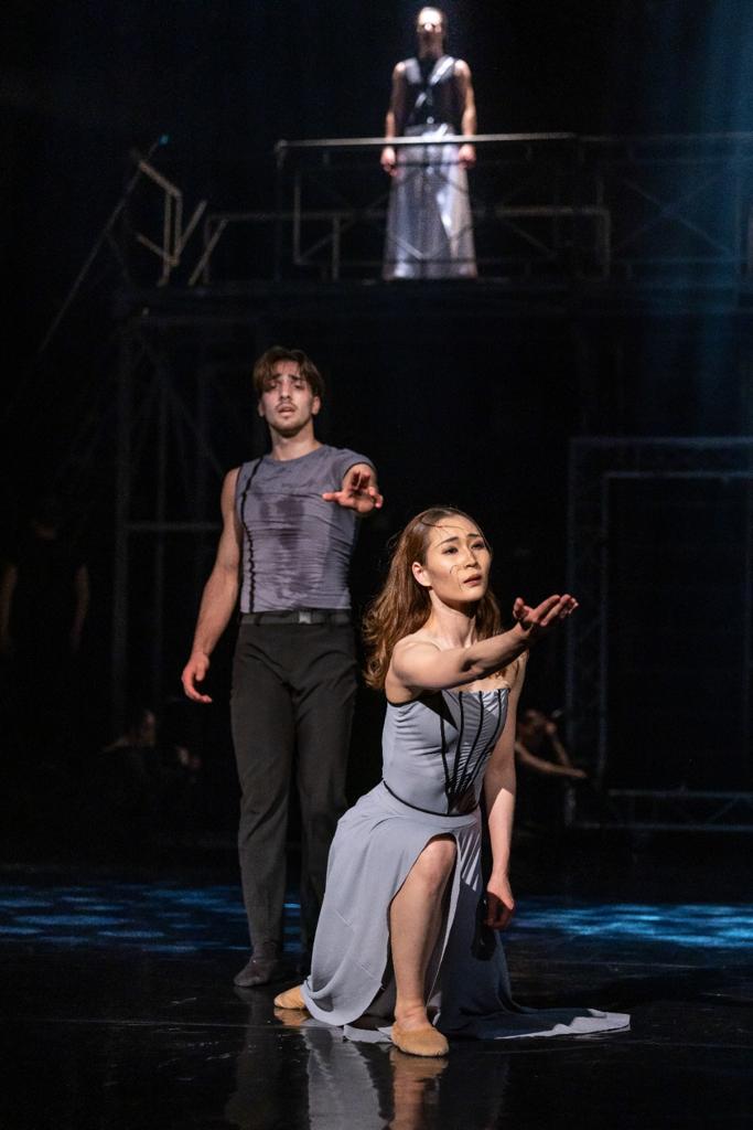 Medzi obrazmi prvého dejstva bolo aj tanečné prevedenie pandémie v choreografii riaditeľa Baletu ŠDKE Andreja Petroviča, ktorý sa na javisku predstavil aj ako interpret.