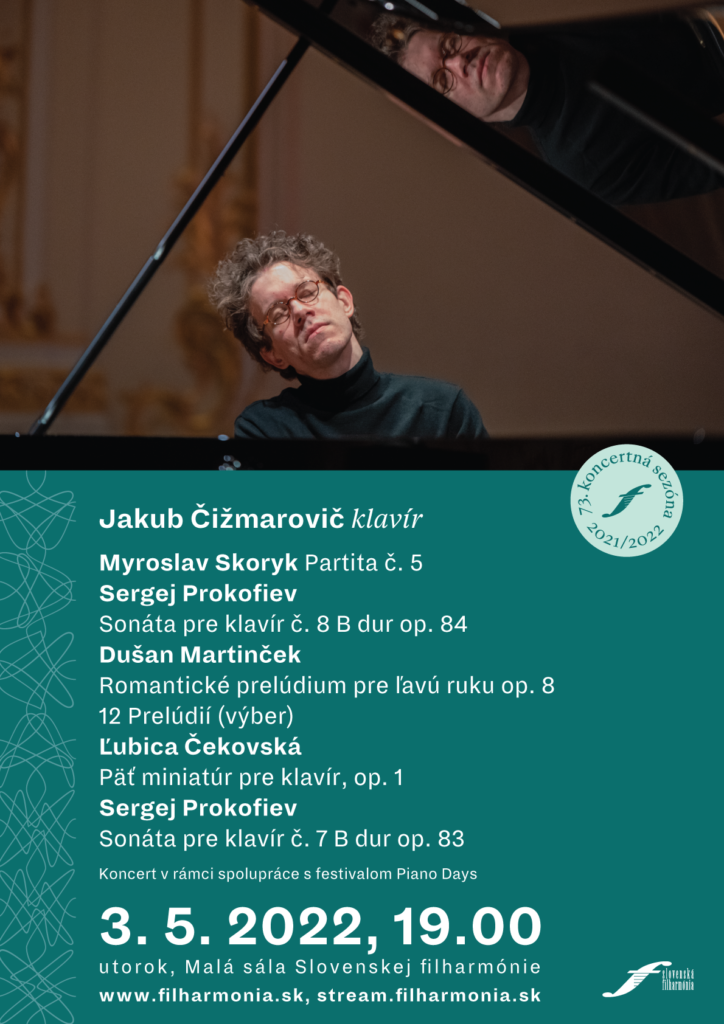 Koncert sa koná v spolupráci s festivalom PIANO DAYS 2022, ktorého ideou je prepojiť mestá po celom Slovensku klavírnymi koncertmi etablovaných i mladých interpretov. Klavírny recitál Jakuba Čižmaroviča je druhým z nich.