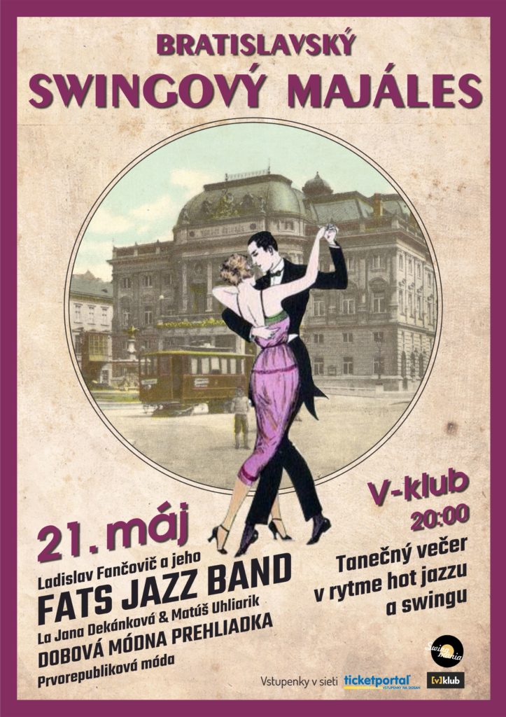 O dobovej tančiarni nám porozprávala organizátorka a speváčka Jana Dekánková: „Dobové swingové tančiarne sme vyše šesť rokov pred pandémiou organizovali niekoľkokrát do roka a ľudia ich už považovali za súčasť svojho života. Je až ťažké uveriť, že ich konečne môžeme, po viac než 2 rokoch, opäť zorganizovať bez obmedzení. Okrem živej hudby sme pripravili aj dobovú módnu prehliadku originálnych odevov z 20. a 30. rokov od združenia „Prvorepubliková móda“ z Moravy. Na Bratislavskom swingovom majálese sa bude dať tancovať alebo len tak príjemne sedieť pri sviečkach a dobrom slovenskom vínku so skvelou hudbou nášho FATS JAZZ BANDu. Ľudia sa na tieto tančiarne už tradične obliekali v štýle prvej polovice minulého storočia, takže atmosféra bývala vskutku čarovná, akoby sme sa spolu s návštevníkmi preniesli o 100 rokov do minulosti. Veľmi nám tie dva roky takéto zážitky chýbali a nesmierne sa tešíme na opätovné stretnutie pri tanci, ktorý k našej hudbe vyslovene patrí.“