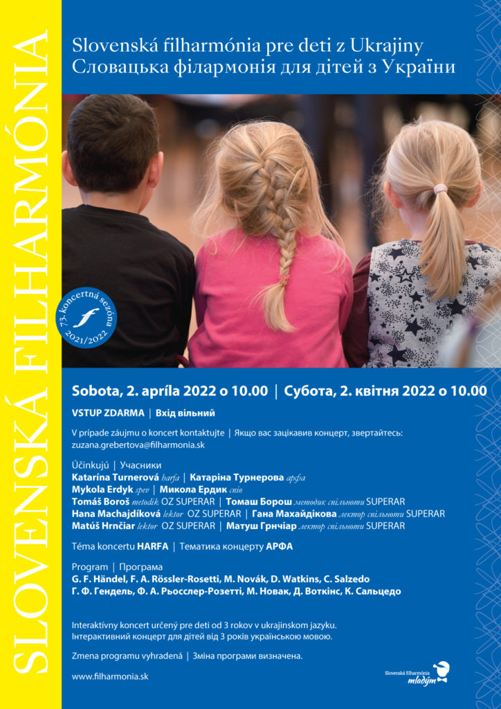 Slovenská filharmónia organizuje v sobotu 2. apríla 2022 o 10.00 Koncert pre deti z Ukrajiny. Do br...