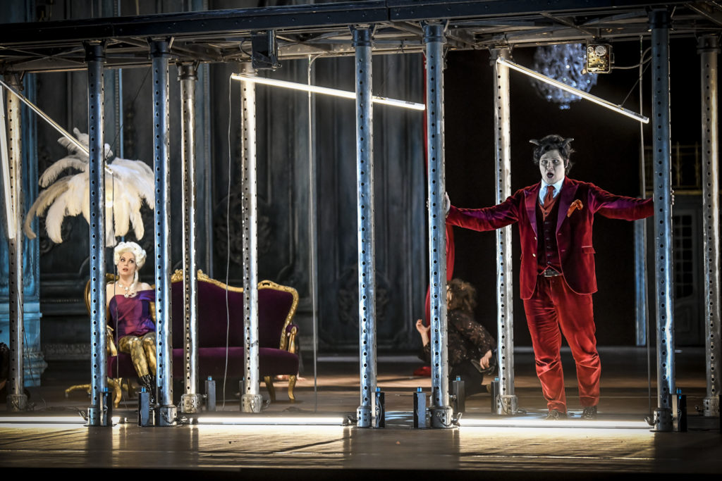 Scéna pôsobí veľkolepo a vychádza z barokového štýlu, no zároveň využíva všetky najmodernejšie technológie, aké v súčasnosti divadlo môže inscenácii poskytnúť. Stretávajú sa v nej teda dva svety: historický a moderný, preto sa na jednej strane vždy pohybujete v rozprávkovom svete a zároveň viete, že všetky efekty, ktoré tvorcovia využili úplne naplno, významne tento žáner podporujú. Oproti minimalizmu, s ktorým sa v súčasnosti v divadelníctve stretávame, sa nám zrazu v opere Čert a Káča otvára veľký, pestrofarebný svet plný dynamiky. S ním korešponduje aj pohybová zložka inscenácie.