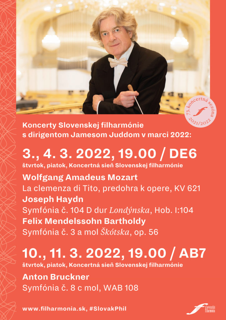 Program otvorí predohra k opere La clemenza di Tito, KV 621 Wolfganga Amadea Mozarta, ktorú skladateľ skomponoval pri príležitosti korunovácie cisára Leopolda II. v Prahe v roku 1791. Joseph Haydn skomponoval počas svojho pobytu v Anglicku dvanásť symfónii. V naštudovaní Jamesa Judda zaznie posledná z nich, Symfónia č. 104 D dur Londýnska. Koncert uzavrie Symfónia č. 3 a mol Škótska, op. 56 Felixa Mendelssohna Bartholdyho, ktorý svoje symfónie začal komponovať v útlom veku. Skladateľ rád a veľa cestoval. Vo svojej Škótskej symfónii zhmotnil svojej dojmy z jedného zo svojich pobytov vo Veľkej Británii.