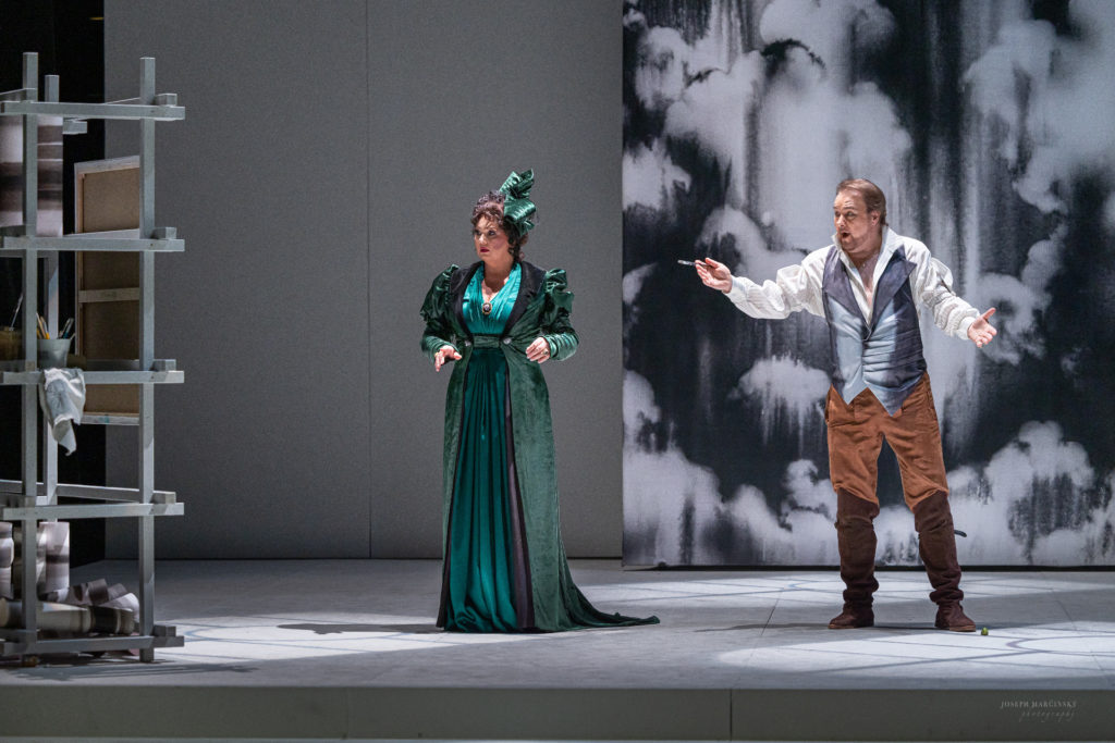 Scénickú podobu dala novej Tosce v Opere ŠDKE výtvarníčka Lucia Tallová, ktorá špeciálne pre novú inscenáciu vytvorila monumentálny obraz dramatickej čiernej oblohy zo série „Clouds“. Vizuálne podmanivé „Oblaky“ sú prítomné vo všetkých dejstvách, majú od začiatku v kombinácii s hudbou a najmä dramatickými scénami silný psychologický účinok. Zrejme nie je náročné vytušiť, že najdôležitejšiu úlohu majú v záverečnom dejstve, pri umieraní hlavnej hrdinky. Ako spraviť smrť v opere tak, aby nebola trápením pre divákov? Presne tak, ako ju režijne v kombinácii s pohltením v „Oblakoch“ vyriešili v novej inscenácii v Košiciach. S vkusom, no zároveň drámou a silnou katarziou. Je to divadelníctvo na vysokej, európskej úrovni.