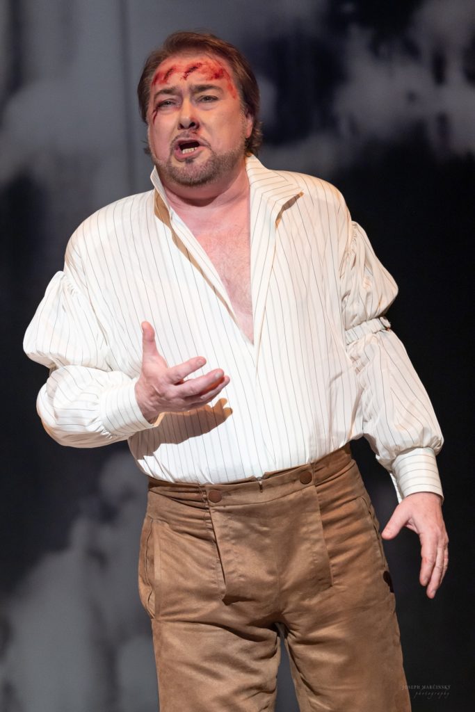 Lukáč nielenže disponuje prirodzene krásnou farbou hlasu, no ako spevák má prirodzený dar počúvať orchester – v jeho podaní nikdy nepočujete intonačne nečistý tón a navyše, ani v exponovaných pasážach neforsíruje, no znejú s potrebnou intenzitou. Dramatické pasáže dokáže podať v kombinácii s hereckým prejavom, uhrančivým, zlým pohľadom tak, aby ste mu uverili charakter skorumpovaného Scarpiu, ktorého stvárňuje. Jeho postava však nie je len tyranom a surovcom tak, ako ju prvoplánovo chápu mnohí operní speváci. Lukáč, našťastie, dokázal stvárniť v Scarpiovi podstatne viac polôh: v obsahovej línii, keď dochádza k zlomu a uvedomí si, že Tosca ho dovedie k obom mužom – k Mariovi či hľadanému Angelottimu, ukáže, ako rýchlo sa vie dostať do ženskej duše a vzbudiť v nej žiarlivosť. V druhom dejstve priznáva svoj pokrivený charakter pred všetkými – je to akési jeho osobné „krédo“, ktoré doznáva pred všetkými. Pokrivené charaktery tak spravidla nečinia. A po tretie, Scarpia je síce ľstivý a násilnícky, no treba priznať, bystrý, inteligentný barón so spôsobmi (nie, nerobíme z neho lákavú pozitívnu postavu, vždy je to negatívny hrdina, no často je vnímaný veľmi plocho, čomu sa v Opere ŠDKE vyhli). To všetko Marián Lukáč dokázal dostať do postavy vďaka prepracovaniu charakteru a presvedčivému speváckemu výkonu.