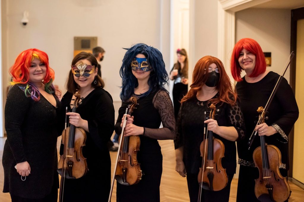 Uvoľnenú atmosféru v sále muzikanti i speváci podporili excentrickými doplnkami, najmä parochňami, zvlášť páni pôsobili mimoriadne vtipne. V orchestri to doslova hýrilo farbami, červené, čierne, blond, modré, fialové, kučeravé, rovné, dlhé, po plecia, účesy všetkých štýlov – vybrať ste si mohli z rozmanitých lookov. Pozor, v prípade niektorých pánov už doplniť len jeden detail a už by z nich bola hotová Pamela Anderson, je to úplne jasné.