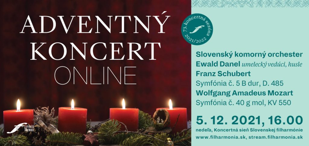 Piata symfónia Franza Schuberta bola v 19. storočí známa ako „symfónia bez trúbok a bicích“, no absentujú v nej i klarinety. Zo všetkých autorových symfónií vyžaduje najmenšie obsadenie. Dielo si získalo obdiv najmä vďaka Schubertovej melodickej invencii, odvážnej harmónii a majstrovskej polyfónii. Symfónia g mol, KV 550 patrí do Mozartovej záverečnej symfonickej trilógie. Naplno sa v nej odzrkadľuje skladateľov vrcholný štýl, v ktorom sa oveľa výraznejšie než predtým prikláňa k tragickejším výrazovým polohám a kontrapunktu. Po odvysielaní v nedeľu 5. decembra Adventný koncert SKO ostáva v hudobnom archíve. Nájdete ho na stream.filharmonia.sk.