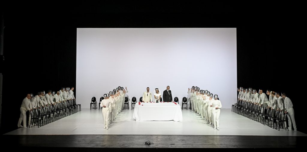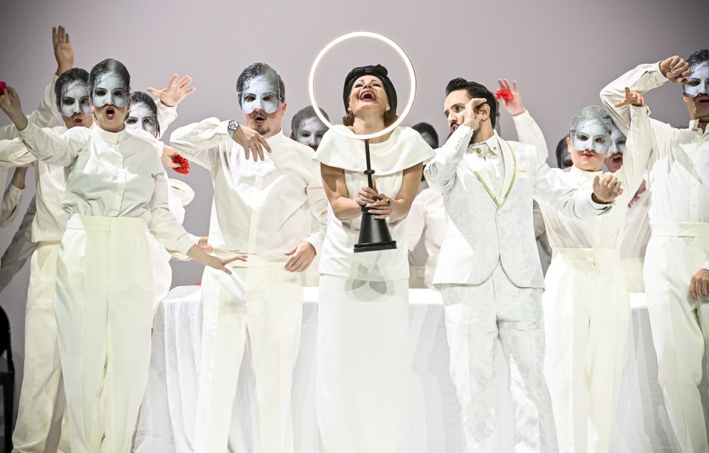 Apropo, druhé dejstvo a zbor Opery SND (zbormajster Ladislav Kaprinay) odetý do bielych, uniformných kostýmov má tiež inšpiráciu vo filmovom svete, konkrétne, v ďalšom výnimočnom tvorcovi – režisérovi Stanleym Kubrickovi a jeho erotickom thrilleri Eyes Wide Shut (Široko zatvorené oči). Priznám sa, necenzurovanú verziu snímky som mala možnosť vidieť na Medzinárodnom filmovom festivale v Karlových Varoch a v tej dobe vyvolal vlnu vášnivých diskusií. Napokon, ako všetky Kubrickove filmy. Aj tento má fantasticky premyslenú, pôsobivú kameru kombinovanú s doslova až hudobným príbehom. Okrem Šostakovičovej známej jazzovej suity zaujme najmä drásavá Musica Ricercata Györgya Ligetiho, ktorá svojím minimalistickým klavírnym motívom doslova bodá do srdca alebo ak chcete, ide na nervy, no v kombinácii s Kubrickovým vizuálnym umením funguje ako absolútne majstrovské umenie. Krok za krokom odhaľuje nepeknú hru, do ktorej sa dostal Tom Cruise a vtedy ešte jeho manželka Nicole Kidman. Okrem toho, že Eyes Wide Shut je film doslova nadupaný sexuálnymi scénami, je to aj psychologická snímka zameraná na to, akú úlohu v živote človeka hrá náhoda a manipulácia. Odhaľuje prostredie vplyvných, bohatých ľudí, ktorí sú už takí znudení životom, že sa oddávajú nechutným, bohapustým, kultovým rituálom v maskách, na neznámom mieste, za úplnej anonymity.