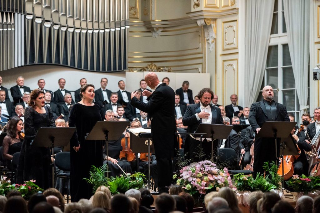 Je však načase predstaviť si sólistov, pretože kvarteto spevákov, ktoré sa publiku v tento večer predstavilo, azda (nielen) v histórii tohto festivalu, ale vôbec, interpretácii tohto diela u nás, nemá veru obdoby. Dinara Alieva – soprán, Olesya Petrova – mezzosoprán, Ștefan Pop– tenor a Dmitry Bellosselskiy – bas. V prvom rade, vďaka výnimočne kvalitnej akustike priestorov Slovenskej filharmónie, sa nestalo, že by sa výkony zboru a sólistov „zlievali“, vynímali sa krásne a vďaka kvalite spevákov sa dokonca ani v častiach, kedy hral orchester vo forte a viac, sa nestalo, že by výkony sólistov zanikli.