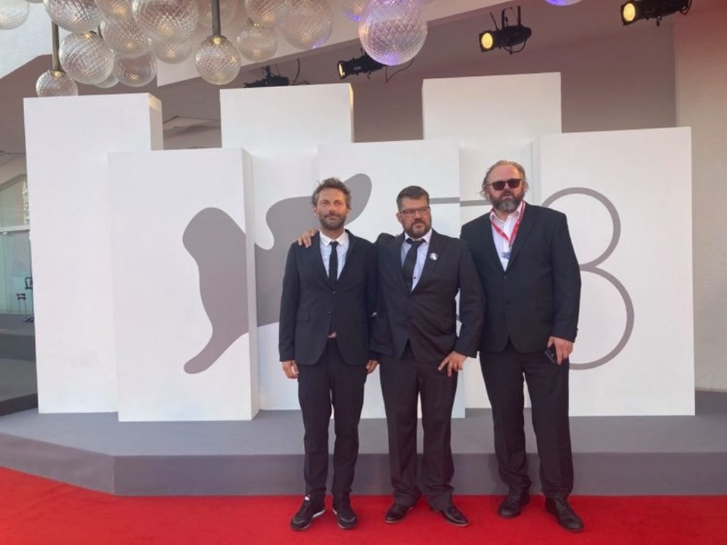 Červený koberec. Filmový festival Benátky, 11.9. zľava Martin Kollar, Peter Kerekes a Ivan Ostrochovský