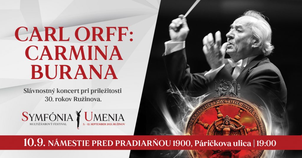 Carmina Burana je vzrušujúce hudobné predstavenie, ktoré vyjadruje oslavu života, lásky a pôžitkov. Na koncerte 10. septembra v bratislavskom Ružinove pod holým nebom, zaznie aj najznámejšia pieseň diela Carmina Burana „O Fortuna“ (Ó, Šťastena) od Carla Orffa, ktorá patrí medzi top nezabudnuteľné hudobné zážitky.