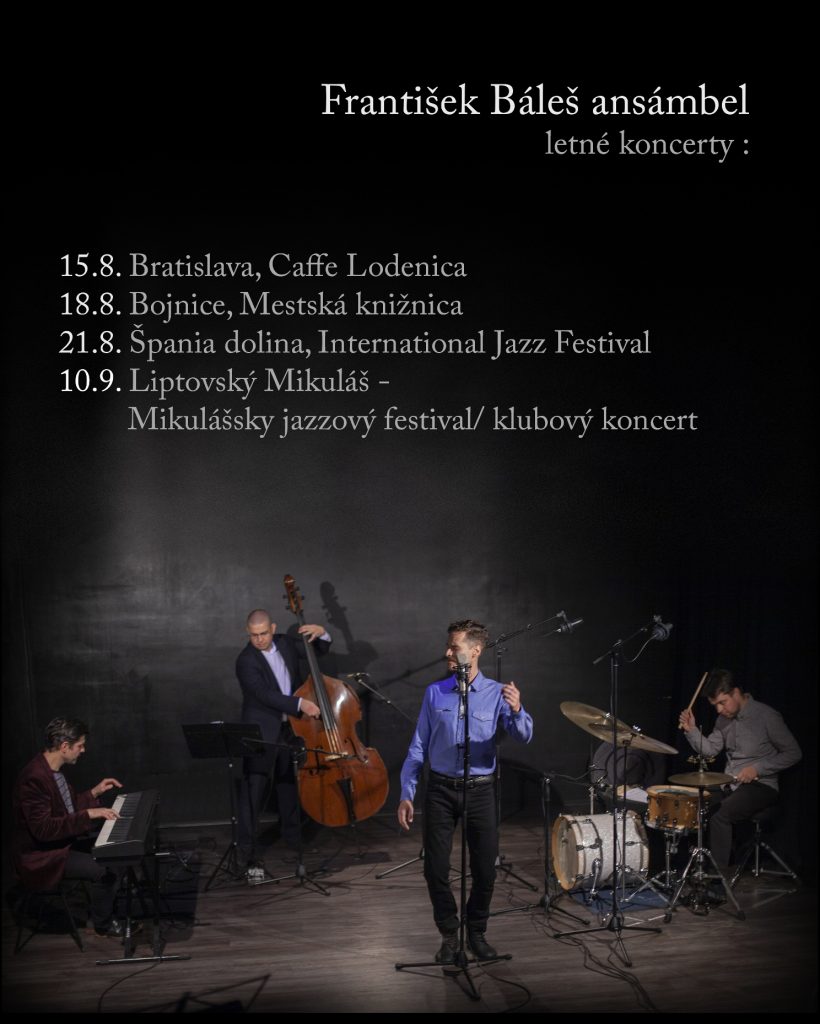 František Báleš ansámbel účinkuje v zložení: František Báleš klavír a autor hudby, Matúš Uhliarik spev, Vladimír Máčaj kontrabas, Juraj Šušaník bicie nástroje. Koncertná šnúra sa uskutoční na dve etapy: letná šnúra sa začne v Bratislave - 15. 8. v Lodenici v Karlovej Vsi, o 16.00., nasleduje ďalší termín 18. 8. Bojniciach - Mestská knižnica o 19.00, koncom augusta, 21. 8. ansámbel vystúpi v rámci podujatia International jazz festival Špania dolina a ak to situácia umožní, koncerty budú pokračovať aj na jeseň - 10. 9. v Liptovskom Mikuláši v rámci podujatia Mikulášsky jazzový festival.