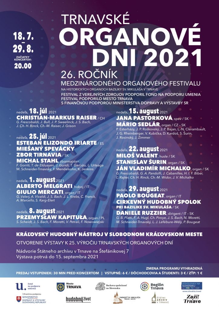 Už túto nedeľu 18. júla odštartuje 26. ročník medzinárodného festivalu Trnavské organové dni 2021.
