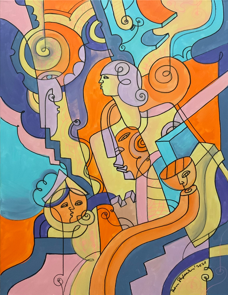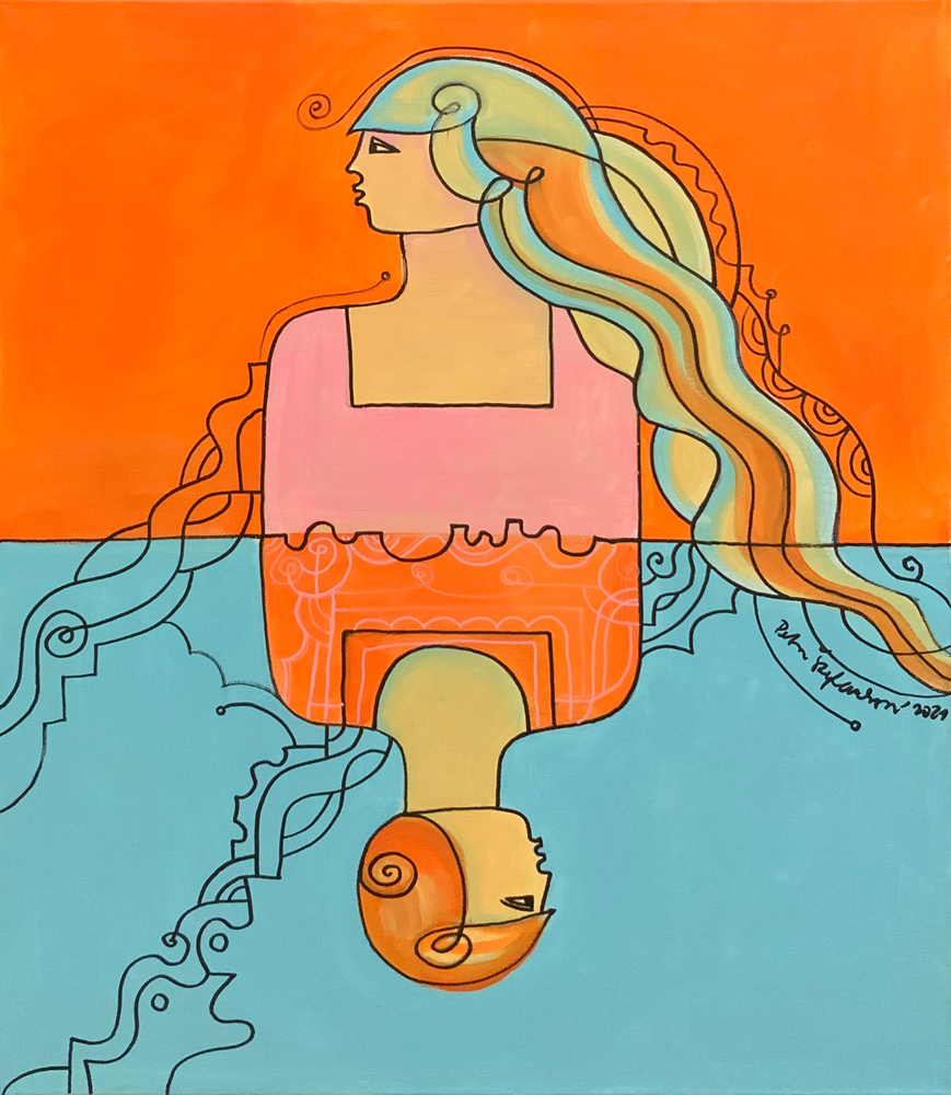 PŠ: Najprv som sa maľbe závesných obrazov veľmi bránila. Nakoniec som však prelomila váhanie vďaka neustálemu experimentu a hľadala som svoj výraz aj v maľbe. No a tiež je to pre mňa aj určitý oddych od počítačovej tvorby, predsa len pred tou obrazovkou trávim veľmi veľa času. Keď sa mi podarilo vytvoriť prvé maliarske portfólio, doslova som zapratala celé poschodie nášho domu svojimi obrazmi a môj obytný priestor absolútne ožil vizuálnym jazykom a farbami. Cez obrazy vstupujem do vlastného imaginárneho sveta a teší ma, keď si nachádzajú svoje uplatnenie nielen v príbytkoch zberateľov, ale aj v rôznorodých výtvarných publikáciách. Moje publikum sa vďaka akrylovej maľbe rozšírilo aj na tých milovníkov umenia, ktorí nemajú blízko k počítačovej grafike a siahnu radšej po autentickejšej ručnej práci.