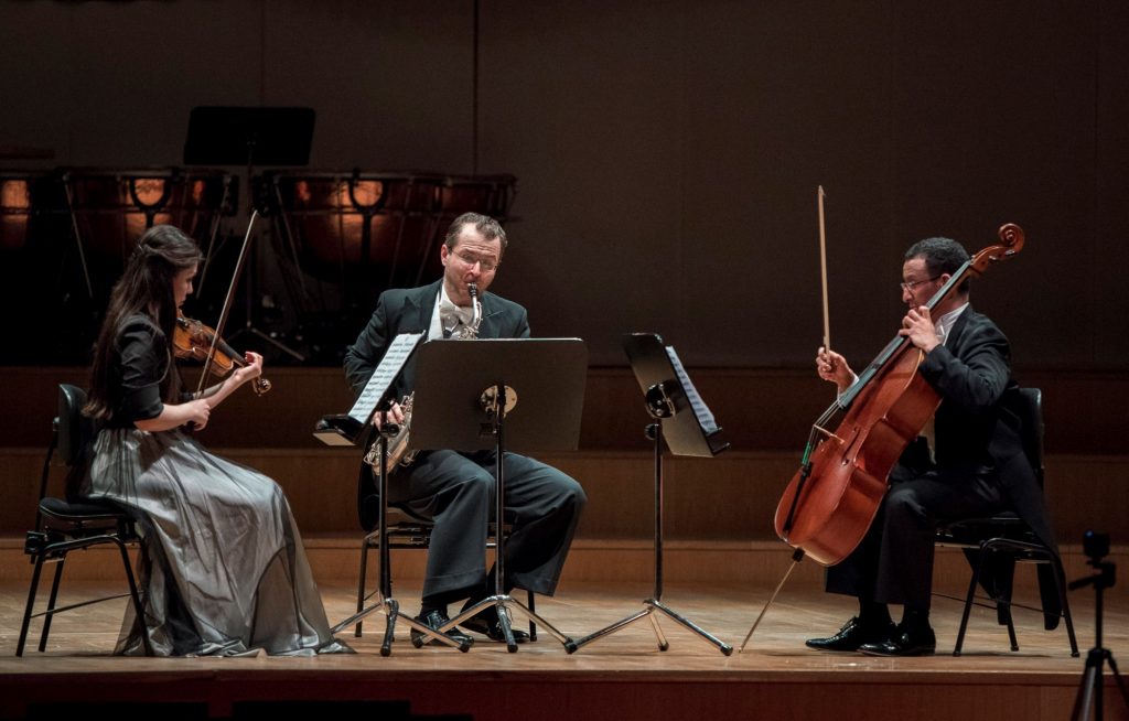 Na spomenutom koncerte okrem Kuchynskej revue Bohuslava Martinů odznelo v slovenskej premiére aj Trio pre husle, violončelo a saxofón Ernesta Rotersa. S nápadom naštudovať túto skladbu prišiel Ladislav Fančovič, ktorý aktuálne študuje magisterské štúdium klasického saxofónu na Fontys University v holandskom Tilburgu. K spolupráci páni oslovili novú členku Slovenskej filharmónie Leilu Akhmetovu pochádzajúcu z Kazachstanu. Výsledok nadchol nielen publikum, ale aj samotných protagonistov, preto sa rozhodli vyhľadať a naštudovať ďalšie skladby pre toto netradičné nástrojové obsadenie, ktoré odznejú na Slovensku po prvýkrát.