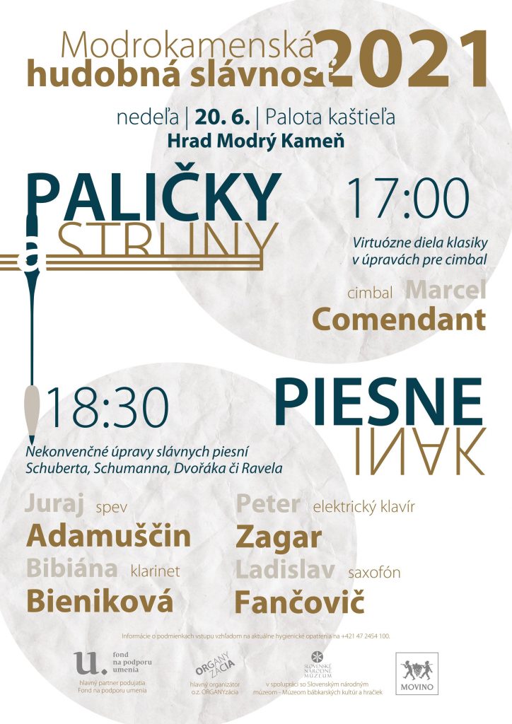 Podujatie otvorí o 17.00 recitál cimbalistu Marcela Comendanta. Pôvodom Moldavčan, usadený na Slovensku, patrí medzi najžiadanejších hráčov svojho odboru v česko-slovenskom prostredí a spolupracuje s mnohými zahraničnými telesami a hudobníkmi naprieč hudobnými žánrami – od klasickej hudby cez jazz, crossoverové projekty, ľudovú hudbu až po pop music. Člen etno-jazzových formácií PaCoRa a Bashavel spolupracuje aj s renomovanými súbormi starej hudby, ako Il suonar parlante a Capella Gabetta ale aj s českou speváčkou world music Martou Töpferovou. V Modrom Kameni sa predstaví v efektnom programe transkripcií známych diel klasiky: zaznie pôvodne husľové Capriccio č. 24 Niccola Paganiniho, klavírna Uhorská rapsódia č. 2 od Franza Liszta ale aj prvá zo slávnych Detských piesní Chicka Coreu. V rámci pravidelnej spolupráce so základnými umeleckými školami v regióne bude spoluúčinkovať akordeonista Michal Bartko zo ZUŠ Veľký Krtíš.