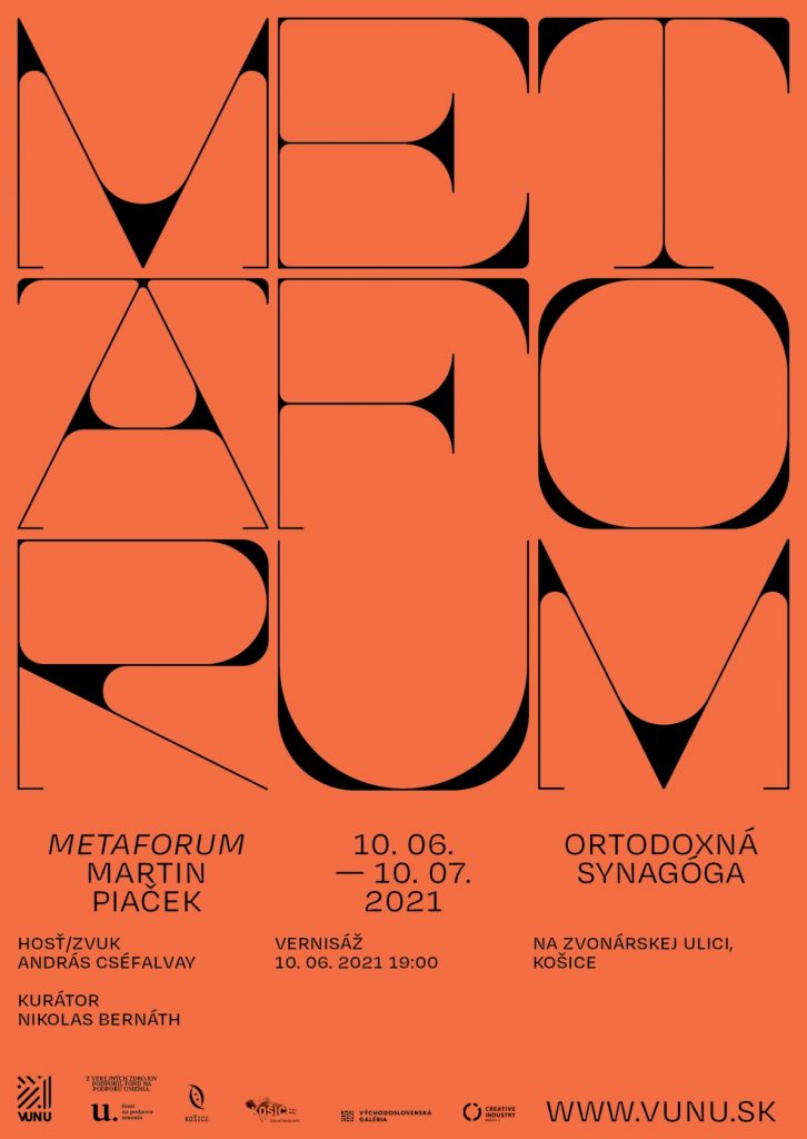 Martin Piaček (1972) vytvára v košickej Ortodoxnej synagóge na Zvonárskej ulici autorskú kultúrnu situáciu, založenú na poetikách dialógu medzi človekom a krajinou. Miestne-špecifická inštalácia využíva jazyk architektúry ako výrazový nástroj na novú a otvorenú interpretáciu priestoru konkrétnej synagógy.